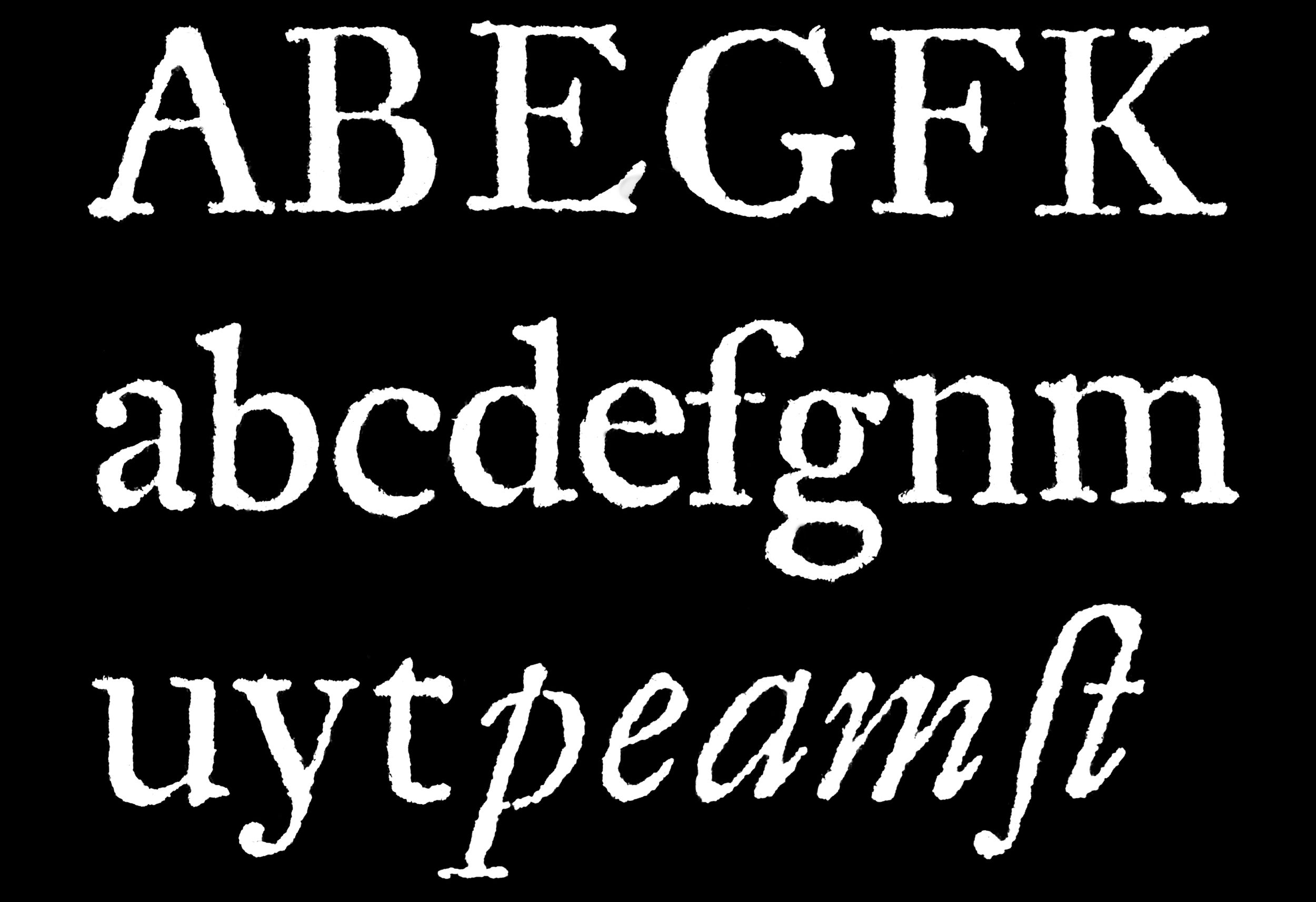 As a secondary source, I used Fleischman’s Augustyn Roman as the main reference for the proportions, due to its generous x-height and balanced counter space. Several other typefaces from the hands of Caslon and Fell were also sampled to ensure selecting the most accurate individual features of each letterform for pairing with Ming.