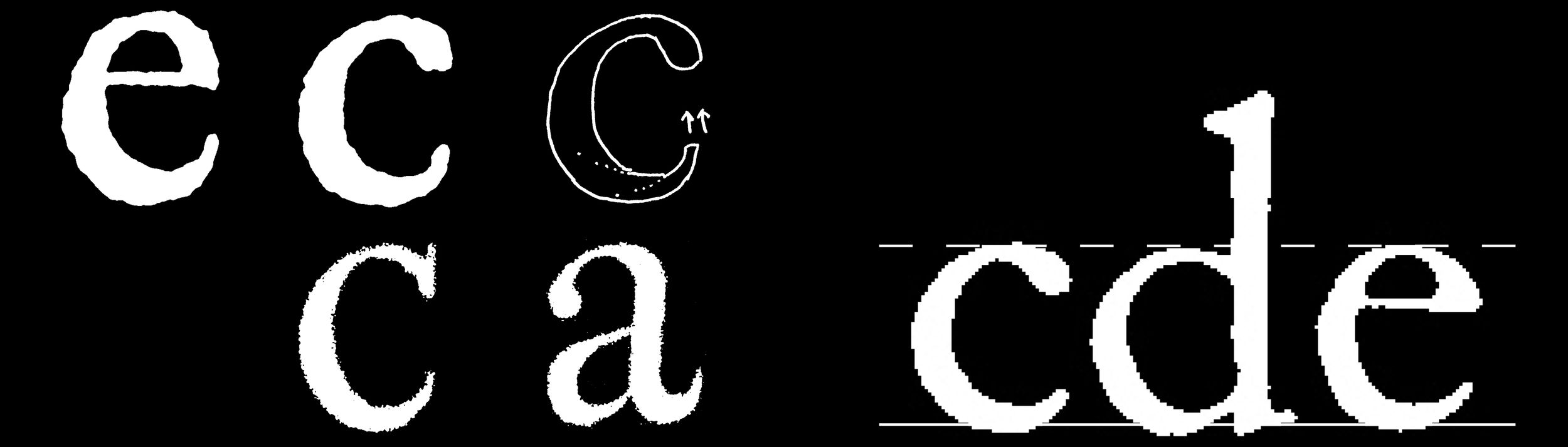 During the Baroque and Neoclassical periods, a more dynamic ‘C’ emerged in Roman capitals, influenced by Italic forms and seen in the work of Fleischman and Kis. With its abrupt stroke termination, this form shares a visual trait found in CJK calligraphy, and it inspired the design of the ‘C’ in Kleisch.