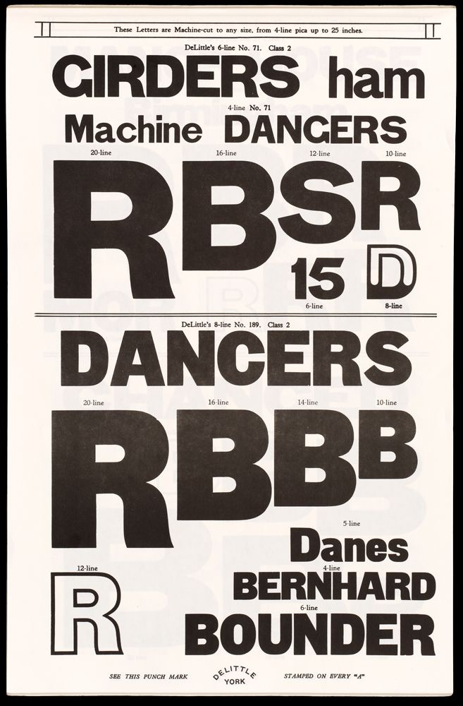 1960s — Historical type specimen showing contoured variants of headline fonts. Book No. 27, Robert DeLittle & Sons, York (England)