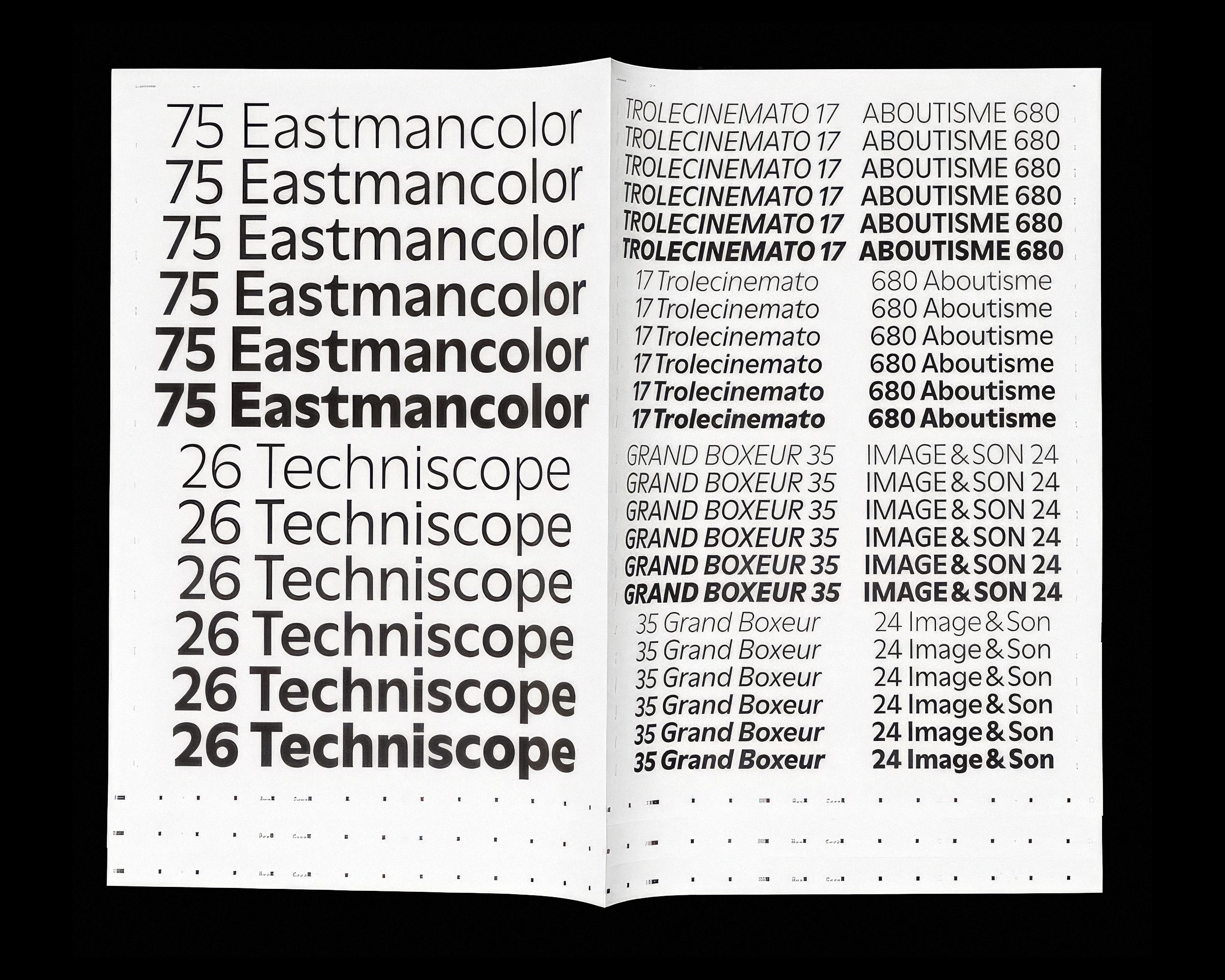 The type specimen was produced by Robert Huber for the presentation of the LL Moderne typeface at the Swiss Design Awards, where the jury selected it as one of this year's winning entries. Conceived as a set of large-format posters, it shows off all cuts of the typeface, in various settings, from very big to extra small.