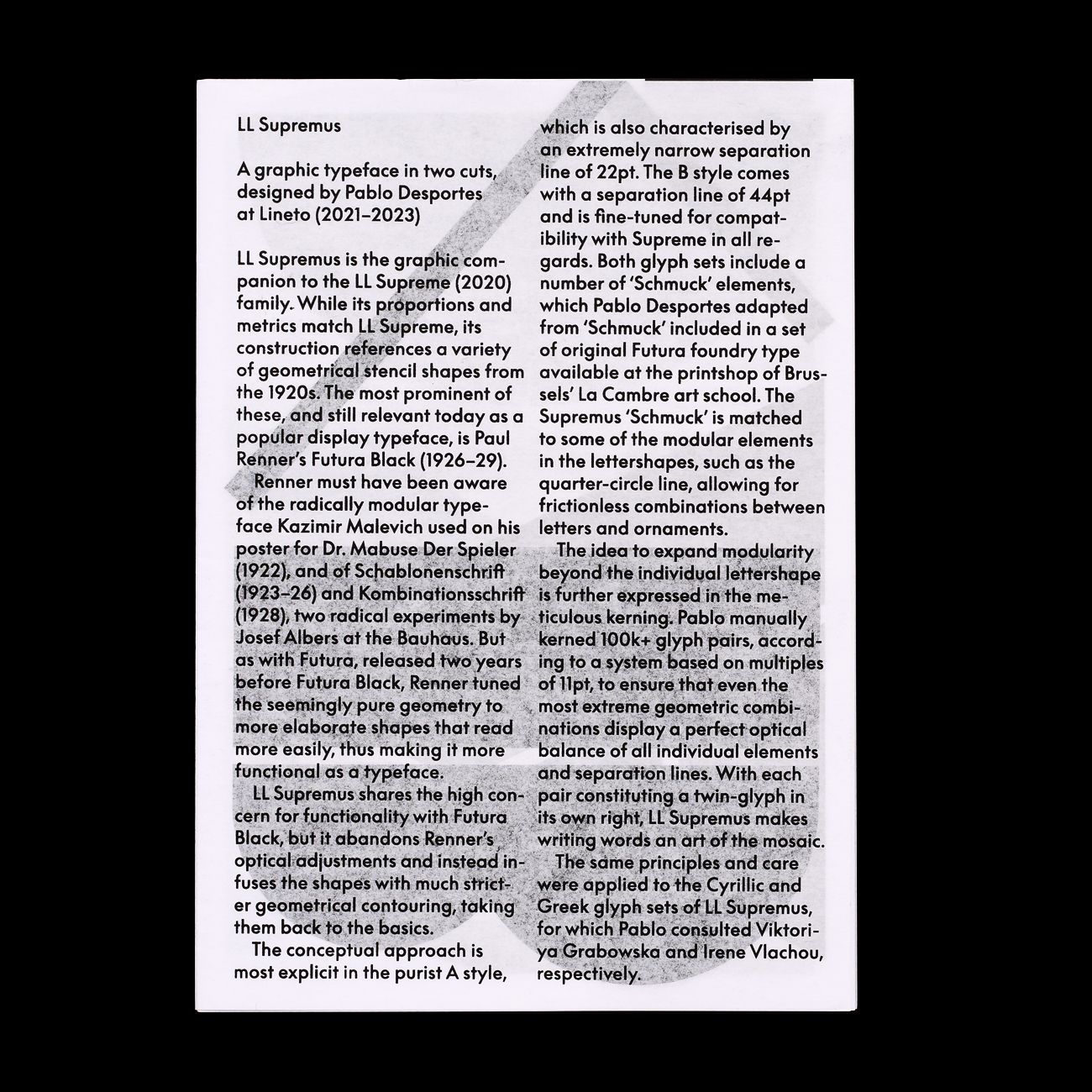 Printed on the occasion of Supremus Textura. Lineto’s collaboration with the artist and designer Na Kim, for her installation at LOOM, Berlin